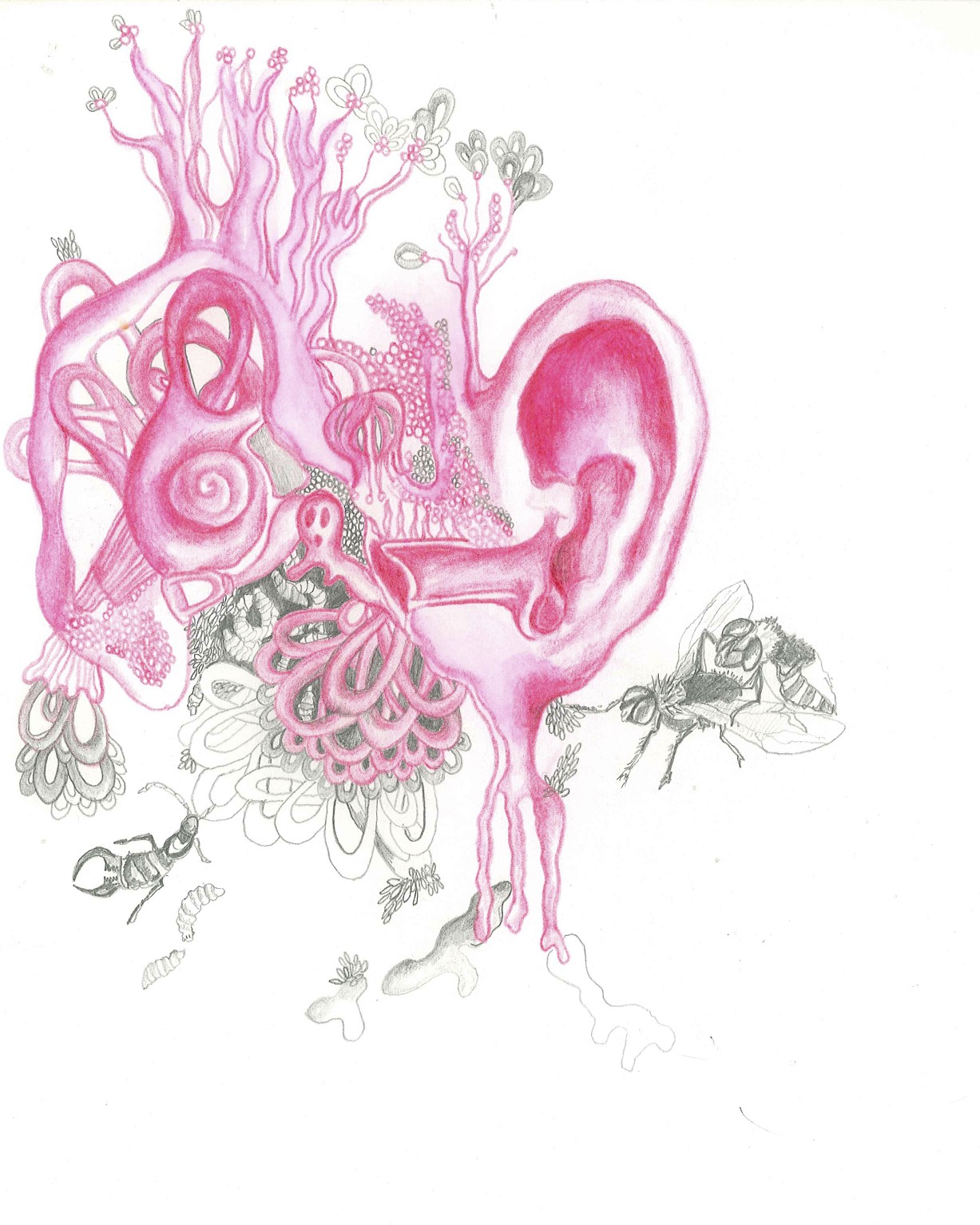 by one of nine artists that showed at a gallery 393 Princes Street Dunedin; this drawing by Rachel Taylor is one of ten original drawings sealed in ten copies of B L I N D / H A T E