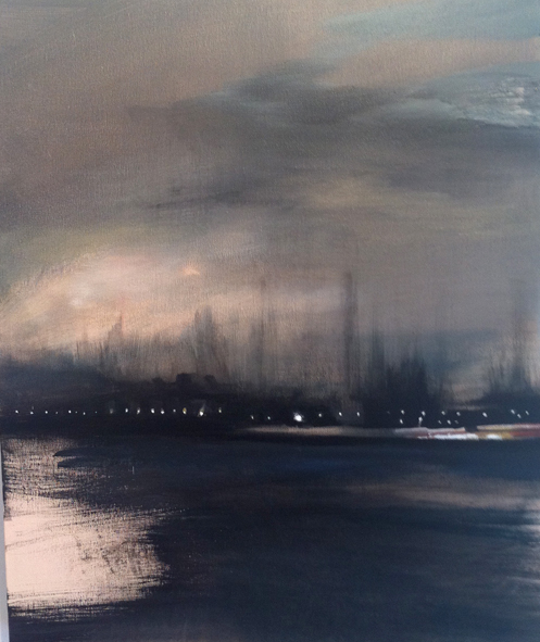 Sharon Singer’s solo show, the aptly named Soil, seems to be a departure from the general tenor of a gallery’s earlier exhibitions, as well as from her own well-developed style. Singer’s works, which have in the past been densely populated by her own personal lexicon of mythical archetypes, are now almost entirely uninhabited. Instead, they seem to envision the raw emptiness of a post-apocalyptic wasteland. In these latest works Singer uses bold expressive brushstrokes to pay homage to the beauty of nature, but there is also a darkness which lurks just below the surface. These landscapes are not a backdrop to humanity, but rather a subject rife with their own ominous narrative and atmosphere. The early 20th century neo-romantics depicted similarly evocative landscapes and were significantly affected by the zeitgeist of war time Europe. Singer appears to have explored this concept in a contemporary setting, utilizing the modern fear of the ever present precipice of disaster to instill her landscapes with a foreboding resonance.