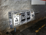 Other works recall the appearance of a poster, pasted up outdoors and progressively worn away by the elements, allowing fragments of earlier posters, pasted below, to show through. Particularly striking is Five Fingers, which suggests an overpainted line drawing of the lungs and windpipe. The clinical restraint of an image conceived as diagram gives way to myriad chaotic colours and multidirectional brush marks that simultaneously augment and obliterate the image.