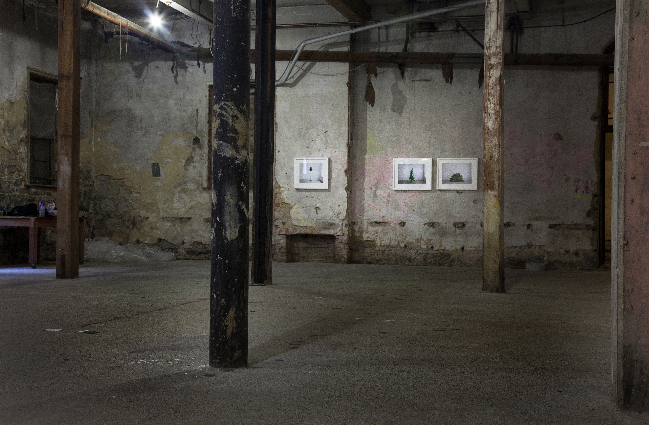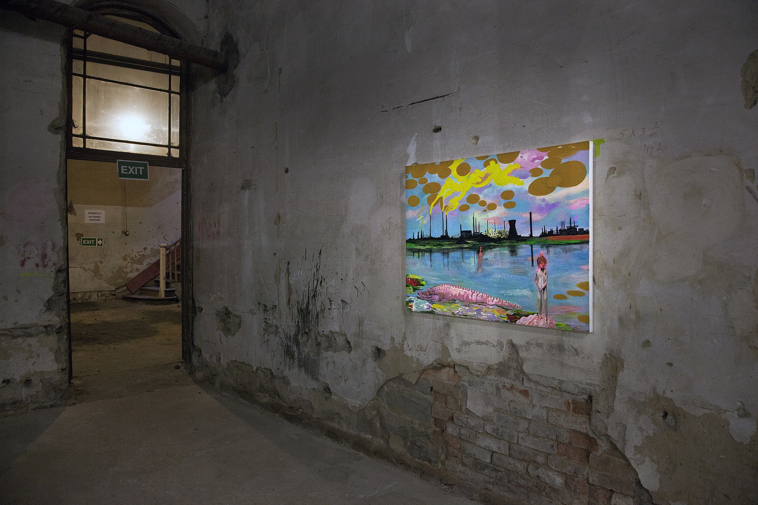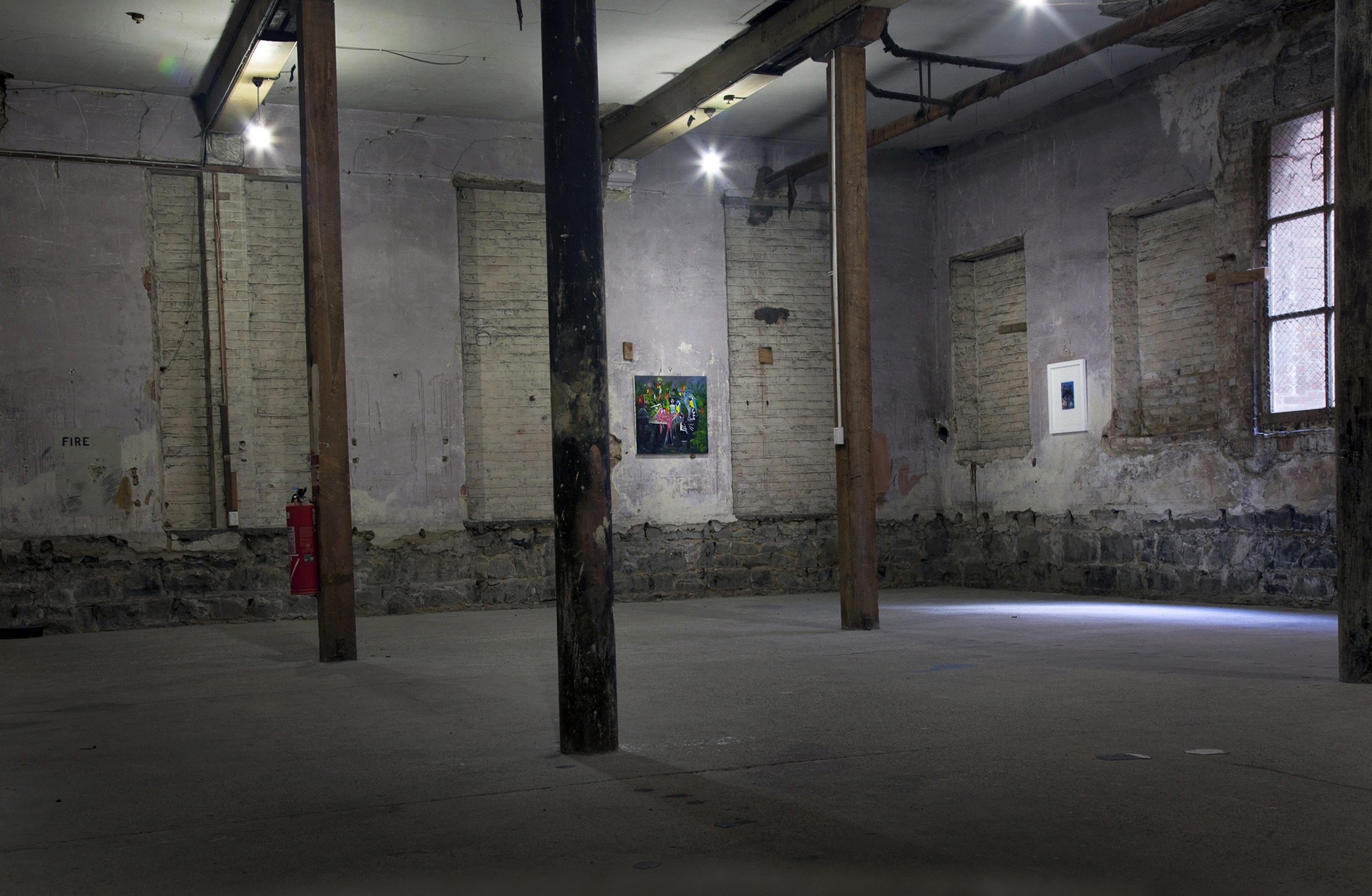an exhibition of new and old work from five artists that showed with agallerypresents.com. Originally a small gallery in Dunedin ‘a gallery’ has become a forever evolving concept, supporting a group of artists that were once based in the small south island city that are now scattered across the globe. From Philip James Frosts bright and violent grime pop works to Justin Spiers dark atmospheric photographs. The works selected for this show are tied together with themes from the ever changing urban enviroment and the resilience and erosion of memory